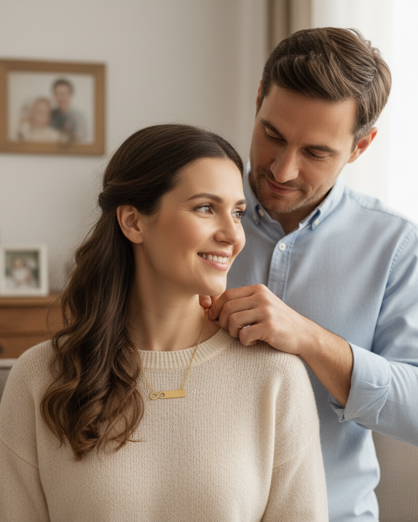 Crafted from high-quality stainless steel with a mirror-polished, super-shiny finish, it’s designed for everyday wear while remaining elegant and sentimental. Whether gifted for an anniversary, birthday, Valentine’s Day, or just because, this necklace is a beautiful way to say always.